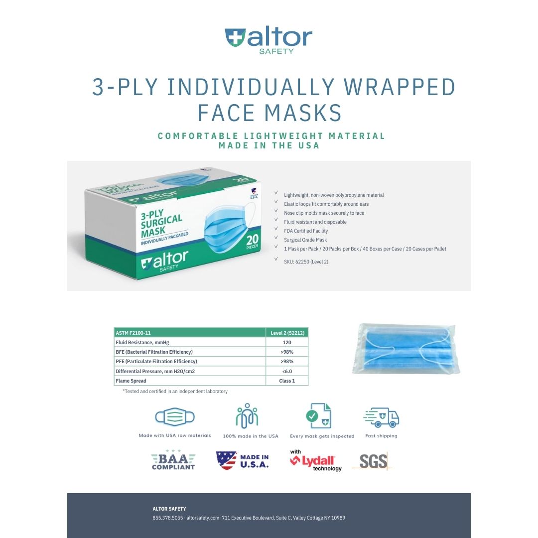 3Ply ASTM Level 2 Surgical Mask Individually Wrapped