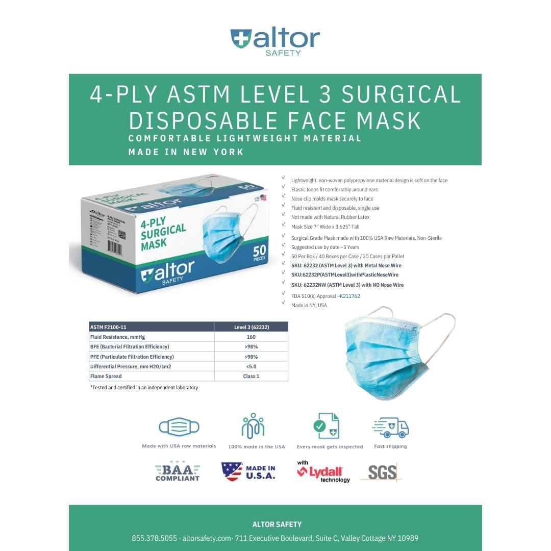3Ply ASTM Level 2 Surgical Mask with Plastic Nose Wire